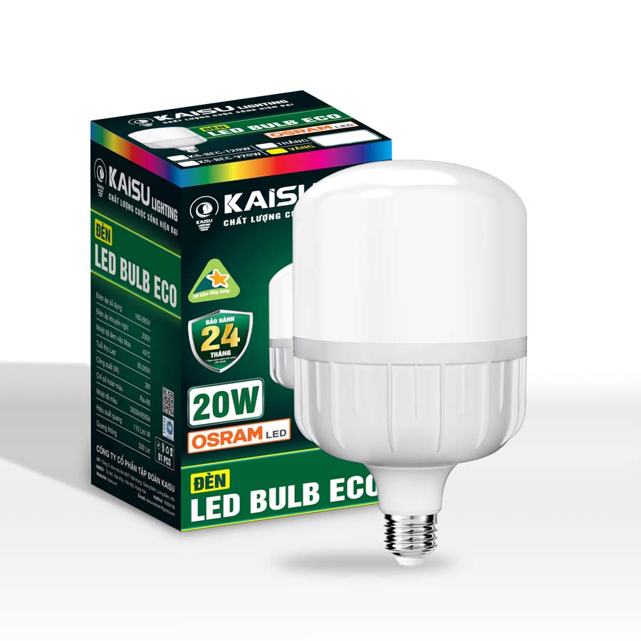 Bóng đèn LED mang thương hiệu KAISU Lighting sử dụng chip LED chất lượng cao cho hiệu suất sáng cao 110Lm/W nhưng vẫn tiết kiệm điện năng. Đèn LED cho ra ánh sáng màu trắng tự nhiên với hệ số trả màu cao (CRI >= 80), ánh sáng phát ra không chói mắt, không làm biến đổi màu gốc của vật được chiếu sáng. Bóng đèn LED Bulb cảu KAISU có tuổi thọ lên tới 60.000 giờ chiếu sáng. Đáp ứng nhu càu chiếu sáng lâu dài mà không ttoons chi phí thay mới hay bảo trì.